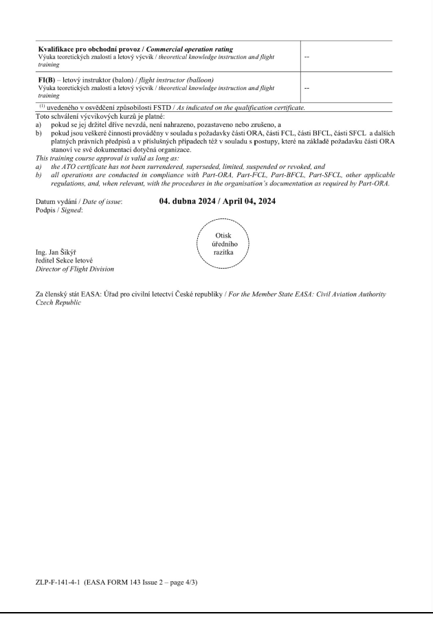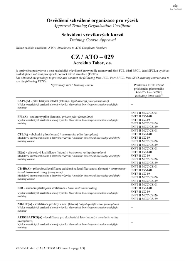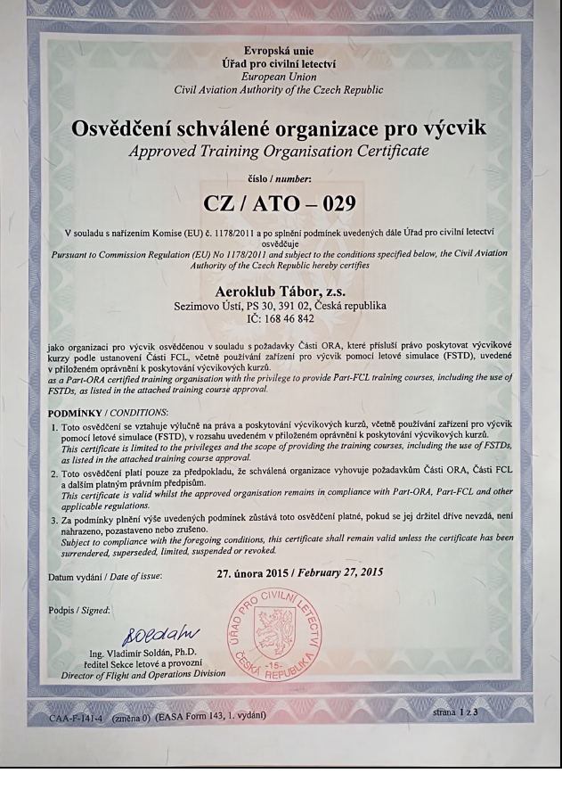 Letecká škola ATO-029 získala oprávnění pro výuku MCC, UPRT-A, BIR.